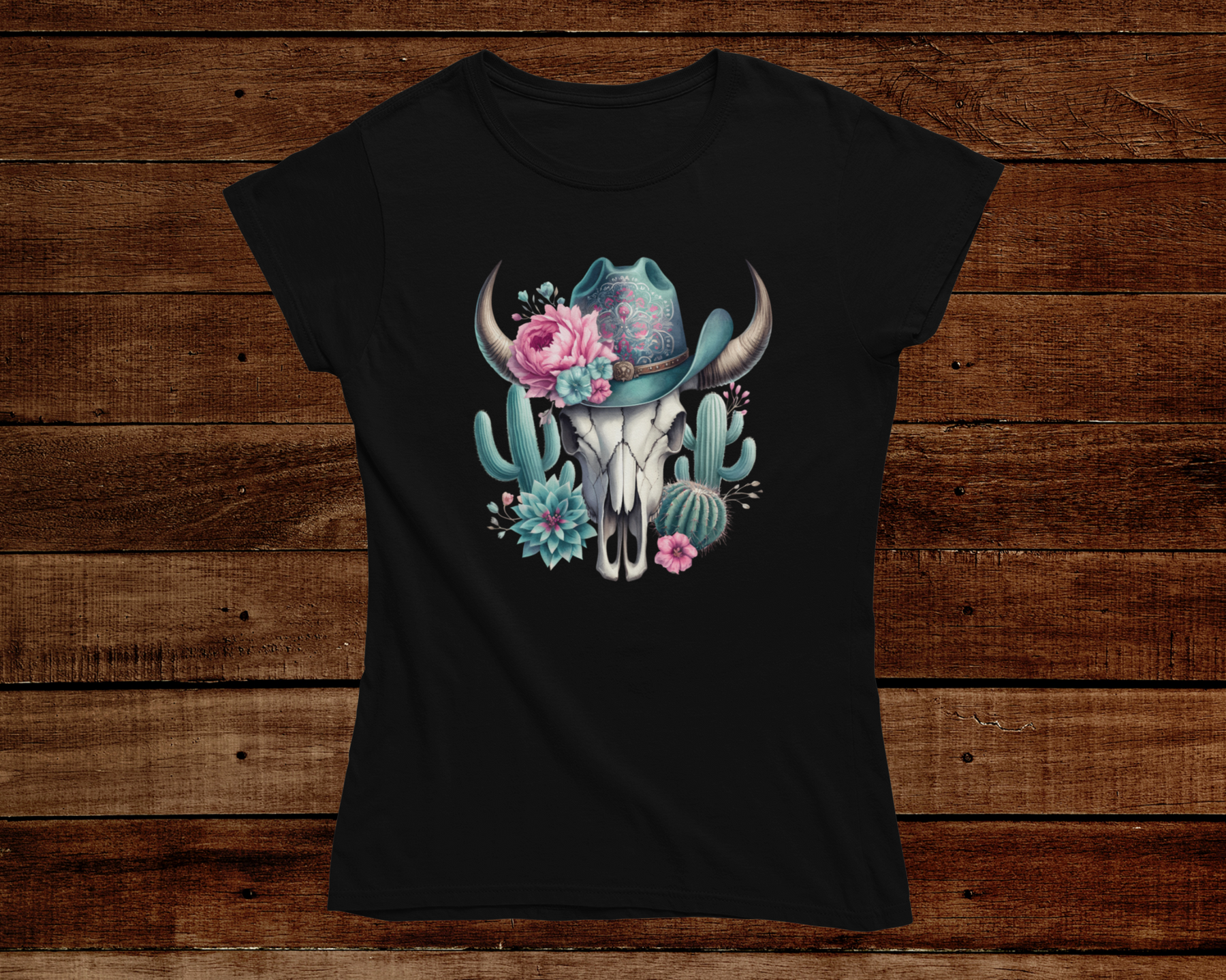 Embrace the spirit of the West with this Western Turquoise Cactus Tee. Featuring a striking bull skull and cactus design in vibrant turquoise hues, this high-quality cotton t-shirt combines comfort and durability. Perfect for those who love classic Western style, it’s soft on the skin and built to last through every adventure.